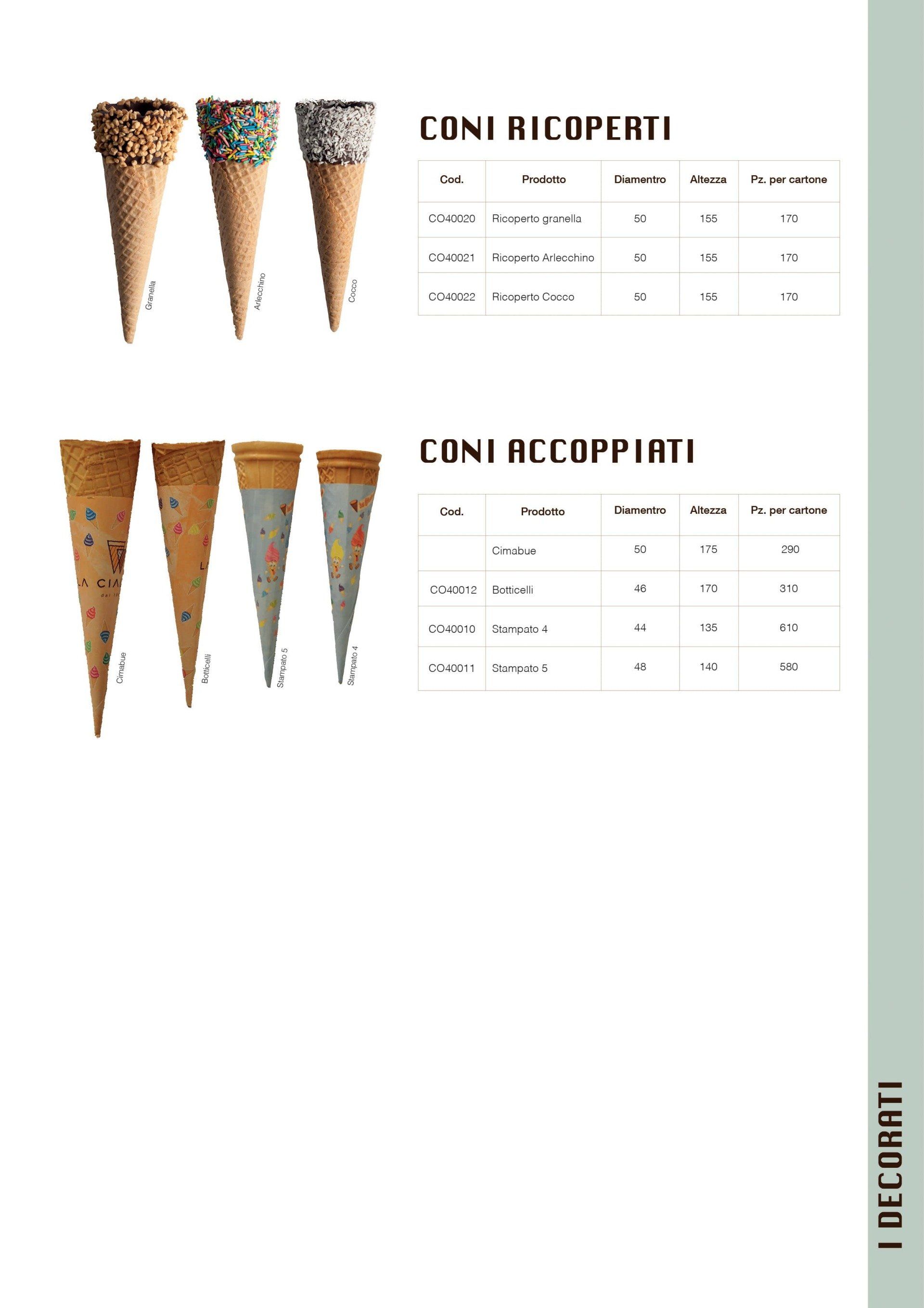 Ampia scelta di coni, cialde, biscotti, coppette, palette e cucchiaini: la